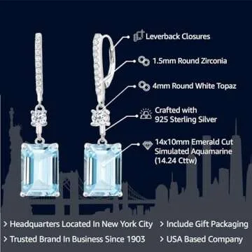 Gem Stone King 925 Sterling Silver Sky Blue Simulated Aquamarine Earrings | Gemstone Birthstone | Drop Dangle Earrings For Women | 14.24 Cttw | Emerald Cut 14X10MM