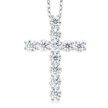 Show more Step into the realm of elegance with the Gem Stone King Moissanite Cross Necklace, a breathtaking embodiment of spirituality and style. Adorned with exquisite 4MM round Moissanite stones, this necklace redefines jewelry standards by offering an unparalleled brilliance that captures the heart. Each intricate detail is crafted from premium 925 Sterling Silver, ensuring durability and a timeless appeal. The delicate cross design, measuring 1.20 inches, effortlessly highlights one’s devotion while serving as a stunning fashion accessory.