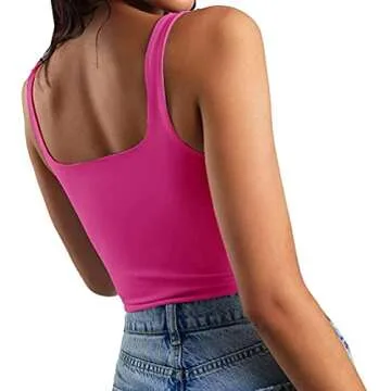 GEMBERA Women's Square Neck Sleeveless Crop Tank Top Gym Stretchy Fitted Basic Summer Wear(3792, Hot Pink S)