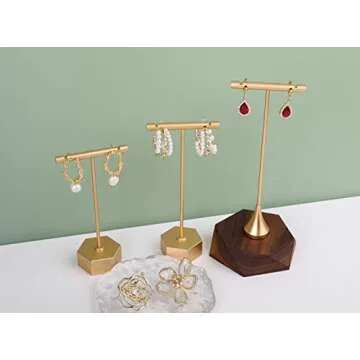GemeShou Gold Metal 2pcs T Bar Earring Retail Display Stand for Show, Tabletop Jewelry Tower Holder for Girl Women【Gold-Hexagon Base 2pcs Height 4.5" and 5.3"】
