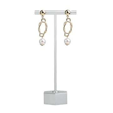 Show moreIntroducing the GemeShou Silver Metal Earring T Bar Stand, a meticulously crafted jewelry display that combines functionality with elegance. Designed for both personal and retail use, this stylish earring holder is made from high-quality aluminum alloy, finished with a sleek silver tone that complements the sophistication of any jewelry collection. Standing proudly at 5.3 inches (13.5 cm), with a robust hexagon base measuring 1.5 inches (3.8 cm), this display ensures that your earrings are showcased securely and stylishly. The horizontal bar stretches 2.4 inches (6 cm), providing ample space to elegantly present multiple pairs of earrings.