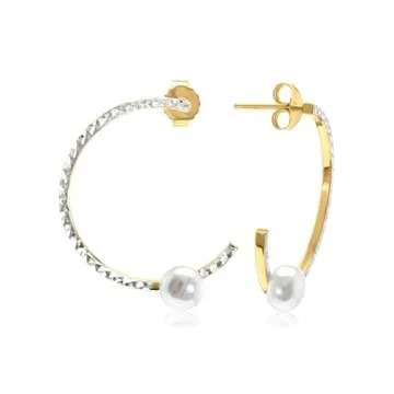 Gemistry Judy Crowell Jewelry Gold Over Sterling Silver and Rhodium Diamond Cut Hoop Earrings with Freshwater Pearl