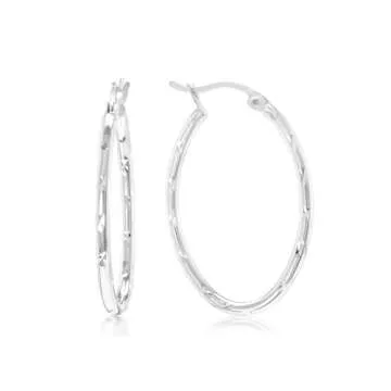 Gemistry Judy Crowell Jewelry Sterling Silver Oval Diamond Cut Hoop Earrings