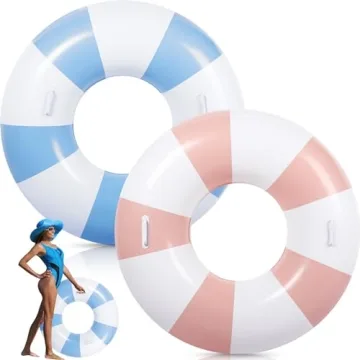 Show more Get ready to make waves this summer with the Gemscream 2 Pcs Large Pool Floats Swim Ring! Perfect for those sunny beach days or fun-filled pool parties, these inflatable swimming tubes aren’t just functional; they’re a statement. Measuring at an impressive 47.24 inches, each float is designed to comfortably support adults and teens alike, with a weight capacity of up to 440 lbs. Featuring robust handles for a secure grip and a timeless striped design in vibrant pink and blue, they offer safety without compromising on style.
