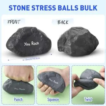 Show moreIntroducing the Gemscream Stress Balls for Adults, an innovative solution designed to bring both stress relief and a dose of humor to your daily routine. These beautifully crafted foam rocks, printed with the uplifting phrase "You Rock", are not just a treat for the eyes but also serve as a functional tool for enhancing your mood and concentration. Their realistic gray color complements any environment, making them perfect for desks or therapy offices. Each stress ball measures approximately 4.13 inches (10.5 cm), offering the perfect size for a satisfying squeeze that can help to melt away tension and frustration.