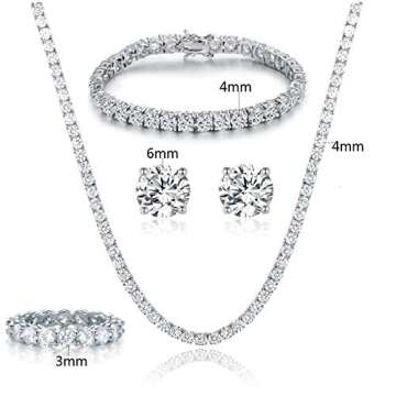 Gemsme 18K White Gold Plated Tennis Necklace/Bracelet/Earrings/Band Ring Sets Pack of 4 (7)