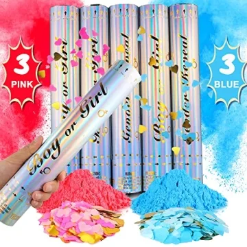 Show moreUnleash an unforgettable explosion of joy at your next gathering with our Gender Reveal Confetti Cannon 6 Pack with Poster. This stunning set is meticulously designed to heighten the excitement of revealing your little one's gender. Included in this pack are six vibrant cannons—three filled with eye-catching blue confetti and three with bright pink confetti—crafted from high-quality materials to ensure a spectacular burst that will dazzle your guests! And as an added bonus, we’ve included a beautifully designed gender reveal poster alongside fun stickers that allow everyone to join in on the excitement, making your reveal an interactive and memorable experience.