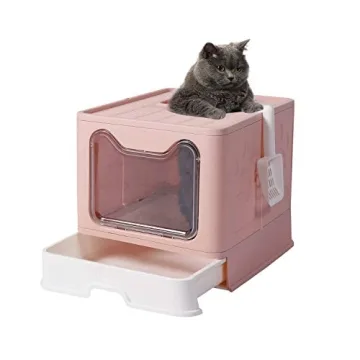 GENENIC Large Foldable Cat Litter Box Pan with Lid - Top Entry Design
