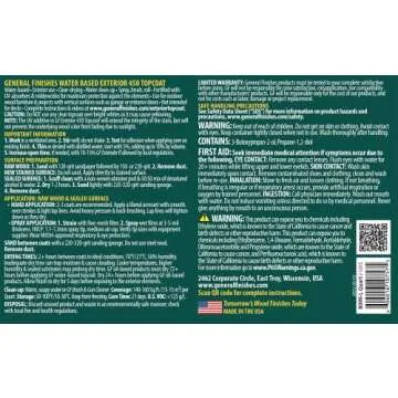 Show moreIntroducing the General Finishes Exterior 450 Topcoat, the ultimate solution for protecting your wooden surfaces while ensuring a flawless finish! This remarkable product is specifically designed to enhance and safeguard your outdoor wood projects from the harsh elements, including UV rays and moisture. With its water-based formula, this topcoat can easily be brushed, sprayed, or rolled, providing versatility for any application method you prefer.