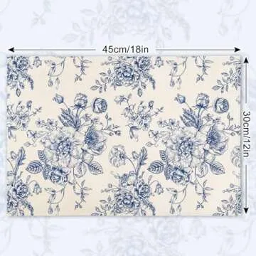 Generic AnyDesign Vintage Floral Placemats Blue Flower Table Mats Non-Slip Heat Resistant Washable Table Dinner Mats for Home Kitchen Decor, 12 x 18 Inch, Set of 4, Blue, White