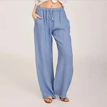 Trendy Casual Women's Linen Wide Leg Pants with Pockets - Summer 2024