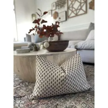 Generic Canyon Theory Hand Block Print Organic Linen 14x20 Inch Lumbar Throw Pillow Cover: Indoor Outdoor Sustainable Handmade Vintage Decorative Cushion Cover (Birdie)