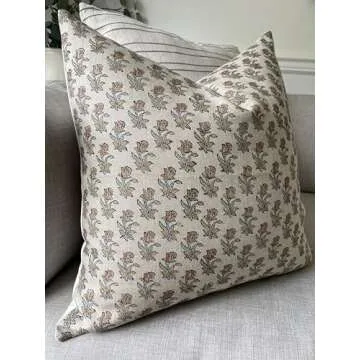 Generic Canyon Theory Hand Block Print Pure Linen 20x20 Inch Throw Pillow Cover: Handmade Vintage Cushion Cover (Collins)
