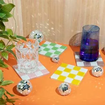 Trendy Checkered Glass Coaster Set for Home Decor Gifts