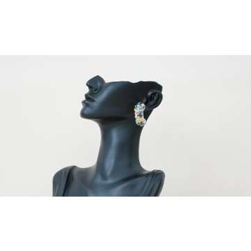 Generic Chunky Multi-Colour Rhinestone Earrings, Blue, Yellow, Pink