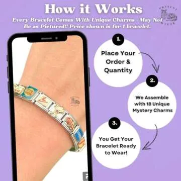 Generic Italian Charm Bracelet - Mystery Assorted Vintage Italian Charm Bracelet with 18 Unique Italian Charms, Silver