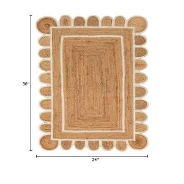 Generic Natural Jute Scalloped Rug Bohemian Rug Decor Rug Handwoven Rug Custom Rug Decorative Rug By Durriesworld (2 X 3 Ft Scalloped Rug)