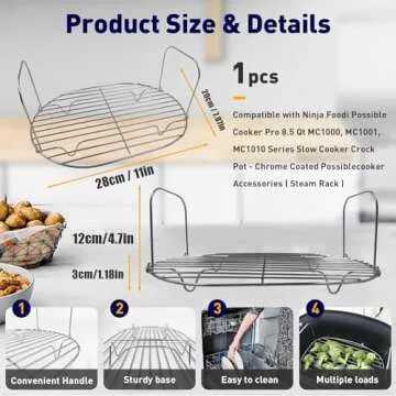 Generic Roast Rack - Compatible with Ninja Foodi Possible Cooker Pro 8.5 Qt MC1000, MC1001, MC1010 Series Slow Cooker Crock Pot, universal, silver