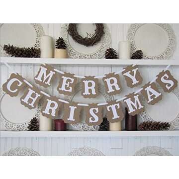 Generic Rustic Wedding Decoration Flag Garland Wedding Banner with White Ribbon Party Decorations(Merry Christmas)