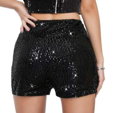generic Women's Sequin Sparkle Elastic High Waist A Line Party Concert Shorts (Black), Small