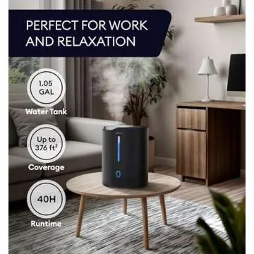 Show more Introducing the Geniani Humidifier – your ultimate solution for enhancing indoor air quality and ensuring comfort in every corner of your home. This remarkable humidifier boasts an impressive coverage area of up to 376 sq ft, making it ideal for various spaces, from cozy bedrooms to expansive living areas. With its sleek design and whisper-quiet operation, the Geniani Humidifier blends effortlessly with any decor, elevating both aesthetic and functionality.