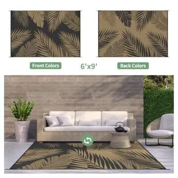 Show moreIntroducing the GENIMO Outdoor Rug, a perfect fusion of style and practicality designed for the outdoor enthusiast. Measuring 6' x 9', this reversible outdoor rug showcases a stunning palm leaf design that brings a touch of tropical elegance to any space. With two beautifully contrasting shades of black and brown, it elevates your outdoor decor while blending seamlessly with nature. Made from 100% virgin polypropylene, it promises not only durability but also eco-friendliness, making it a sustainable choice for your outdoor adventures.