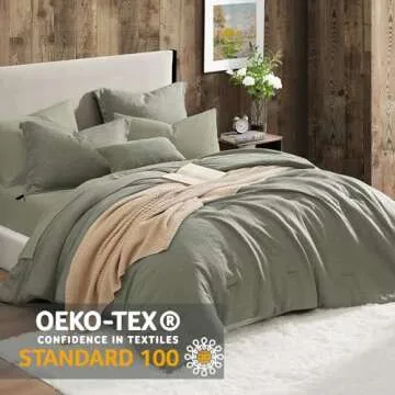 The comforter set features a linen-like fabric made from 130 GSM material for the top and 100 GSM ultra-soft pre-washed microfiber for the reverse side.