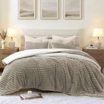Geniospin Queen Comforter Set - Ultra-Soft Sherpa Fleece for Warmth and Style in Taupe