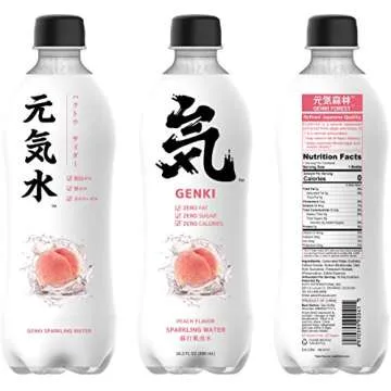 GENKI FOREST Sugar Free Sparkling Water with Fruit Flavors,Zero Calories,16.3 Ounce,Pack of 15(Peach Flavor)