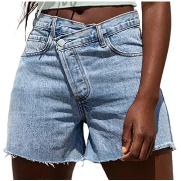 Genleck Women's Juniors Criss Crossover Jean Shorts High Waisted Stretchy Denim Shorts Casual Summer Hot Shorts(Light Blue, Small)