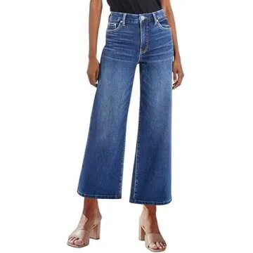 Genleck Women's Wide Leg Jeans – Trendy Cropped Loose Jeans High Waisted Stretchy Capri Denim Pants Baggy Trousers 2024(sea Blue, 2)