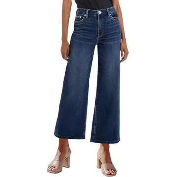 Genleck Women's Wide Leg Jeans – Trendy Cropped Loose Jeans High Waisted Stretchy Capri Denim Pants Baggy Trousers 2024(Cetacean Blue, 8)