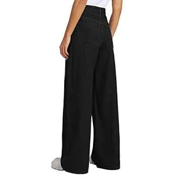 Genleck Womens Wide Leg Ripped Boyfriend Jeans High Waist Baggy Flare Casual Denim Pants Trousers (010-Black, S)