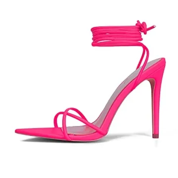GENSHUO Women's Sexy Strappy Heel Sandals – Fluorescent Pink Stiletto Pumps 11cm