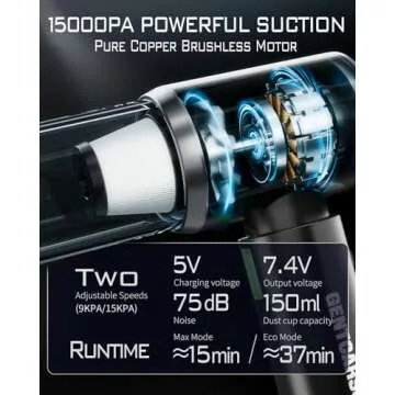 GentCarson Car Vacuum Cleaner, 4 in 1 Portable Car Vacuum 15000Pa High Power Cordless Vacuum with with 2 Filters, Rechargeable Wireless Handheld Vacuums Compressed Air Dusters for Car Home Office Pet