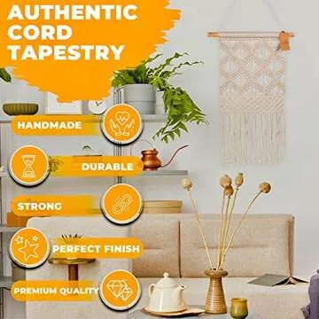 Gentle Crafts BoHo Macrame Hanging Wall Decor: Decorative Wall Art Cotton Rope Cord Woven Tapestry Home Decorations for the Living Room Kitchen Bedroom or Apartment