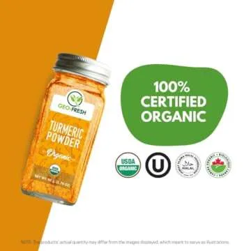 Geo-Fresh Organic Turmeric Ground, 1.76 oz (50g), More than 3% curcumin, Non-GMO, Kosher, 100% Organic, Gluten Free, USDA Certified