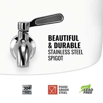Geo Sports Porcelain Ceramic Crock Water Dispenser, Stainless Steel Faucet, Valve and Lid Included. Fits 3 to 5 Gallon Jugs. (Solid White)