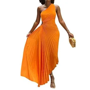 Show more Introducing the ultimate statement piece for your wardrobe: our exquisite one-shoulder maxi dress for women, crafted from premium polyester material that feels soft against the skin. This elegant dress features a hollowed design on the waist, creating a stunning silhouette that is sure to turn heads at any occasion. With its irregular hem and fashionable pleated design, this dress makes a bold yet graceful statement whether you're attending a wedding, a cocktail party, or an evening gala.