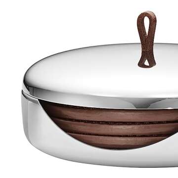 The Georg Jensen brand is synonymous with quality craftsmanship, established in 1904 in Copenhagen, with a mission to create lifestyle products that resonate with elegance and functionality. This coaster set not only protects your tables but also serves as a beautiful decor element in its own right, making it the ideal gift for anyone who appreciates premium home accessories.
