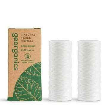 Georganics Natural Dental Floss – Spearmint Dental Floss – Natural Wax & Flavoring – Vegan & Cruelty-Free – Refillable Dispenser – 2 x 55 Yards Refill Pack