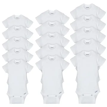 Show moreIntroducing the Gerber Baby 15 Piece Onesies Bodysuit Multi Size Pack, thoughtfully designed for your little one’s comfort and your creative DIY projects! This versatile collection includes a total of 15 solid white bodysuits in three adjustable sizes: 0-3 months, 3-6 months, and 6-9 months, catering to the different stages of your baby’s early life. Made from high-quality, soft materials, these bodysuits are durable yet gentle on your baby’s delicate skin. The expandable lap shoulder neckline ensures easy dressing, while the practical snap closure simplifies diaper changes, allowing you more time for precious moments with your baby.