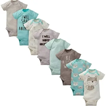 Show moreThe Gerber Unisex-Baby 8-Pack Short Sleeve Onesies Bodysuits are an essential addition to any infant's wardrobe, providing unmatched comfort and practicality for both babies and parents. Crafted from soft, breathable cotton rib, these onesies are designed for the ultimate convenience, ensuring your little one stays comfortable all day long. The gentle fabric is perfect for delicate baby skin, minimizing any irritation while maximizing wearability for everyday adventures.