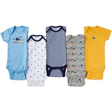 When it's time to add something new to his lineup, these 5 Pack Short Sleeve Boys' Gerber Onesies are the perfect pick!