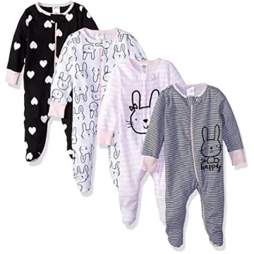 Gerber Baby Girls 4 Pack Sleep 'N Play Footie - Bunny & Smiley Preemie