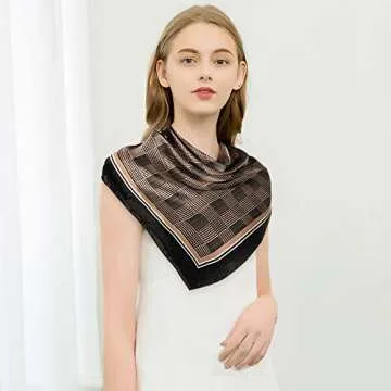 GERINLY Silk Bandana Scarf for Men Soft Plaid Neckerchief Face Cover - 2PCS Coffee+Gray