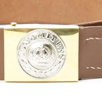 German WWI Brown Leather Belt with Prussian Brass and Nickel ‘Gott Mit Uns’ Buckle- Size 32-36 (81cm-91cm)