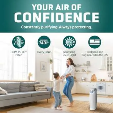 But it doesn’t just stop at filtration; this purifier actively fights germs with cutting-edge UV-C light technology. It targets airborne viruses, including influenza and rhinovirus, while also reducing volatile organic compounds (VOCs). It’s your first line of defense against illness, ensuring fresher air and a lower risk of viral infections for your family.