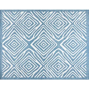 Gertmenian Indoor Outdoor Area Rug, Classic Flatweave, Moroccan Collection II, Stain & UV Resistant Carpet, Deck, Patio & Mudroom, 5x7 Standard, Navy Blue Ivory Tribal Safari, 19494