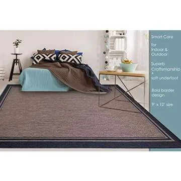 Gertmenian Indoor Outdoor Classic Flatweave Area Rug, Stain & UV Resistant Carpet, Deck, Patio, Poolside & Mudroom, 9x13 Ft Extra Large, Simple Border, Black Tan, 22012